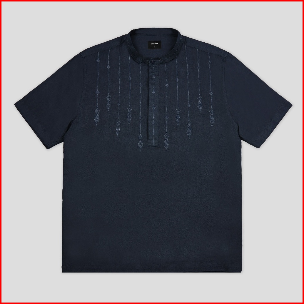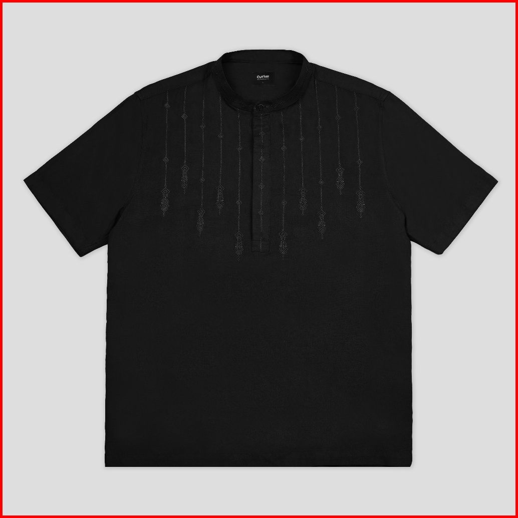Cutoff Rayyan Kemeja Koko Cotton Rayon Kasual Bordir Basic Polos Pria Lengan Pendek