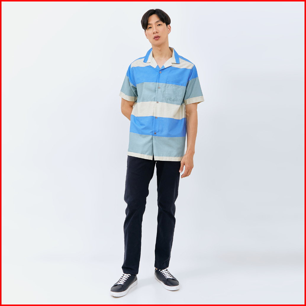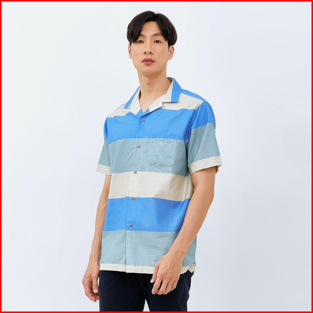 M231 Kemeja Pria Stripe Hawaii Pendek Tosca 3170a