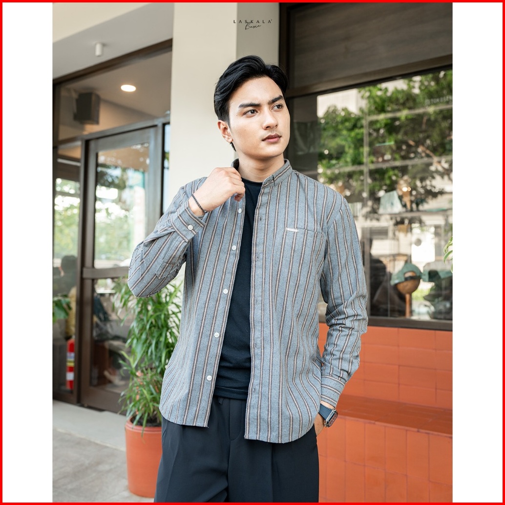 Hailuk Lewis Kemeja Stripes Pria Lengan Panjang Premium
