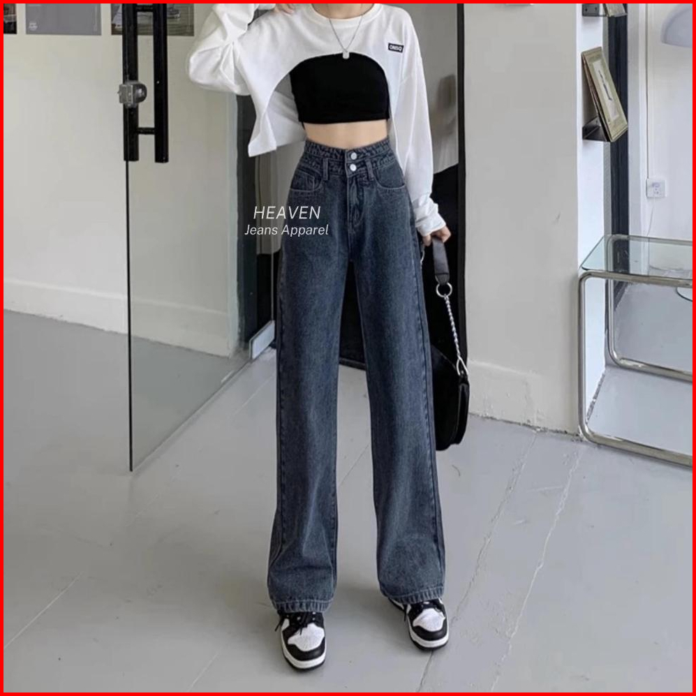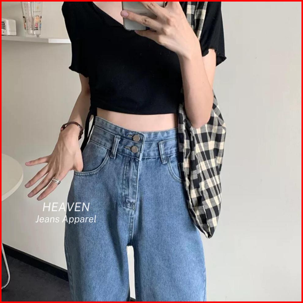 Celana Kulot Highwaist Jeans Loose Korean Panjang Denim Wanita Hangover Lorain Straight Up