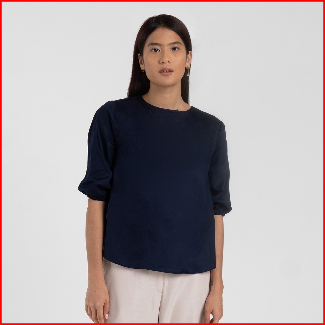 M231 Kemeja Wanita Baloon Top Pendek Navy 2452d