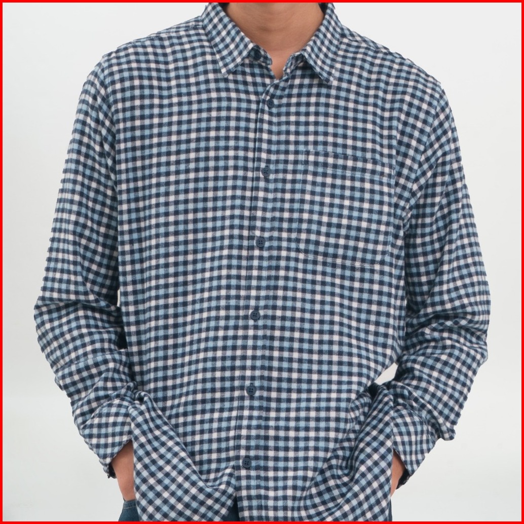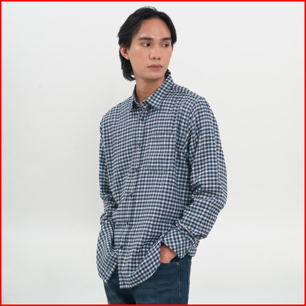 M231 Kemeja Pria Flannel Panjang Biru 0895