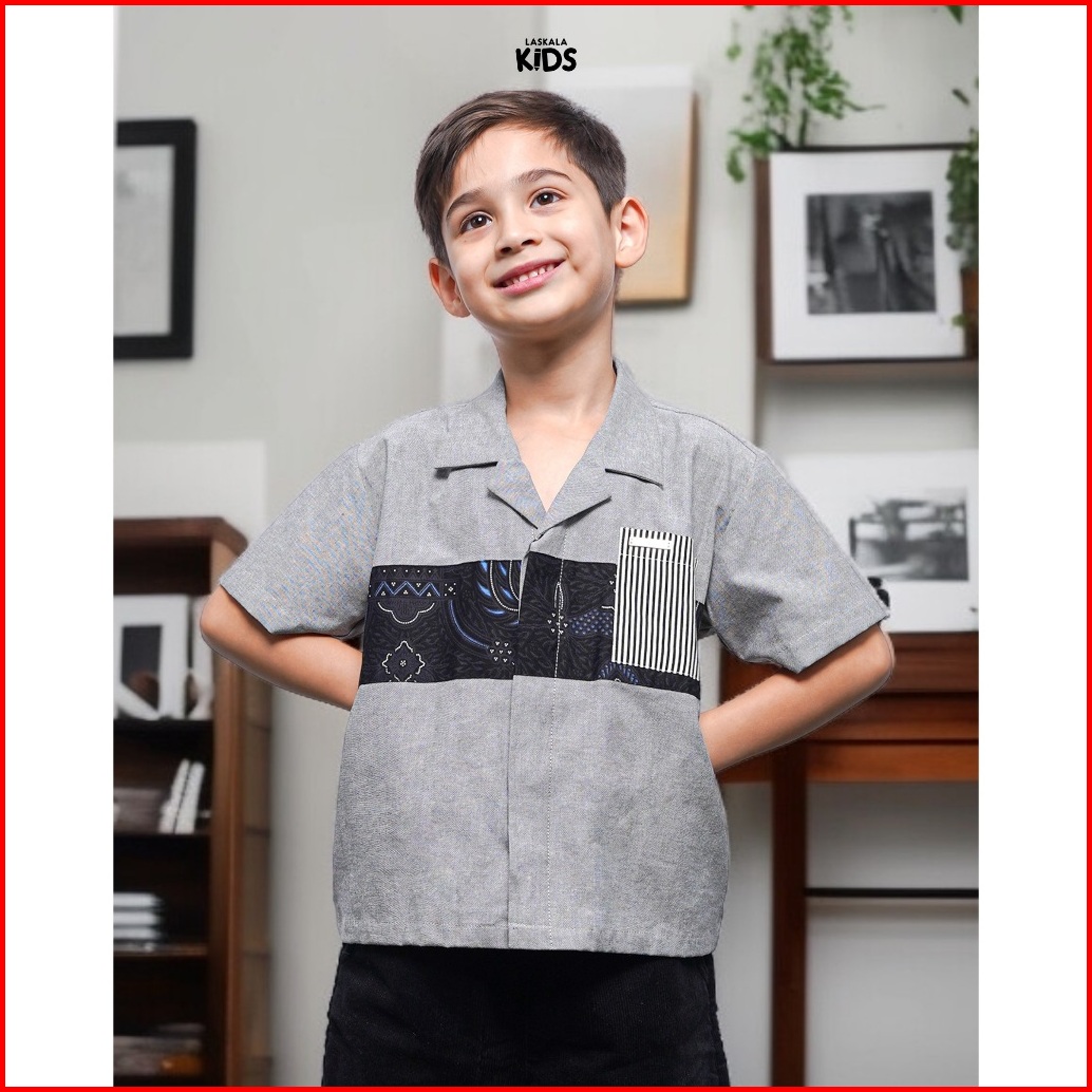 Hailuk Kids Juna Grey Kemeja Anak Laki-laki Premium Reguler Fit Lengan Pendek