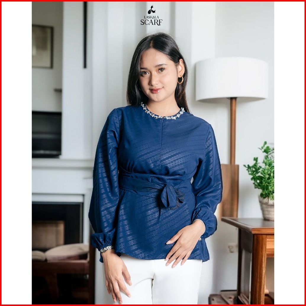 Hailuk Woman Dilan Navy Blouse Batik Wanita Lengan Panjang