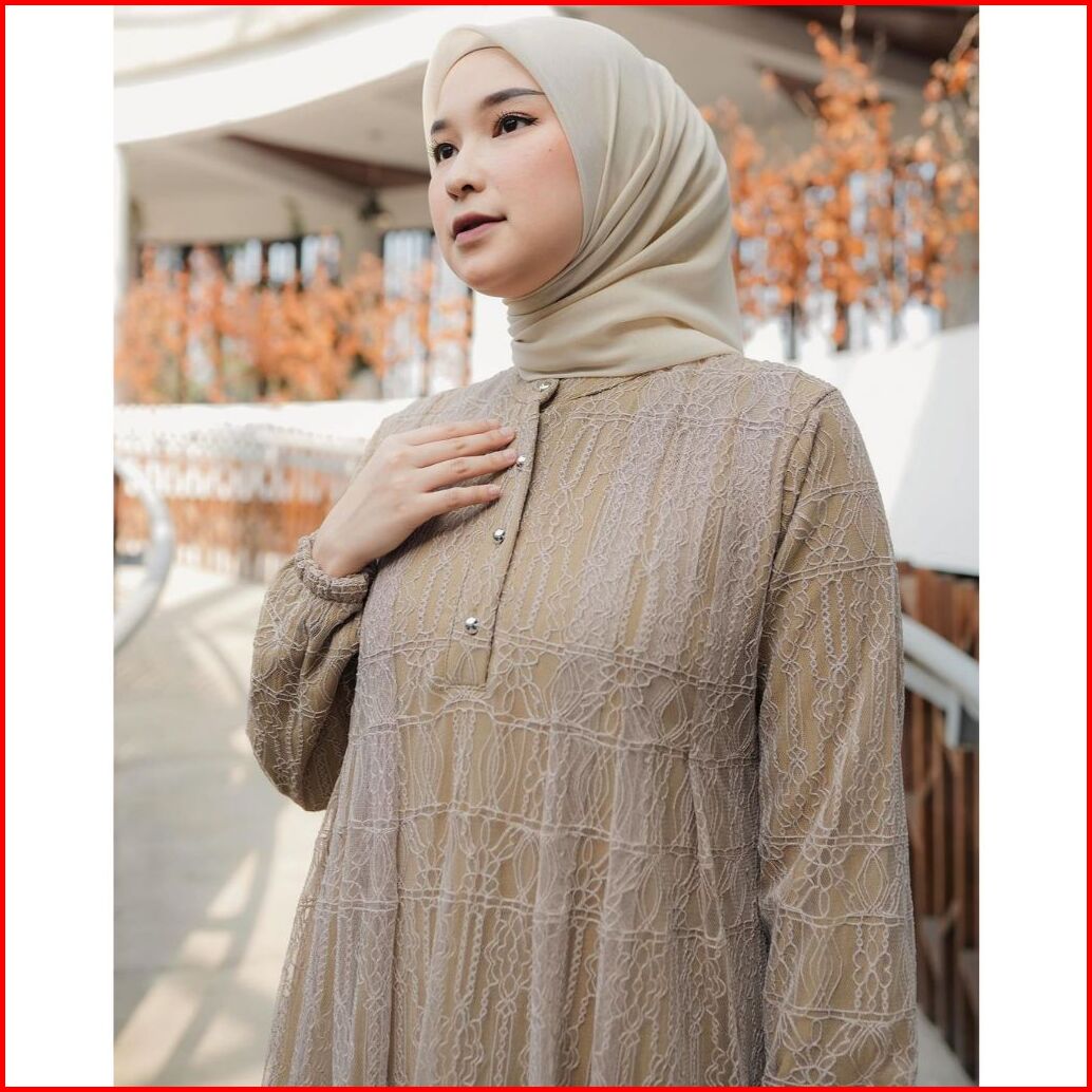 Mayumi Dress Busui Friendly Brukat Mix Chantily Full Gaun Pesta Busui Mewah Gamis Full Chantily Eigma Mewah
