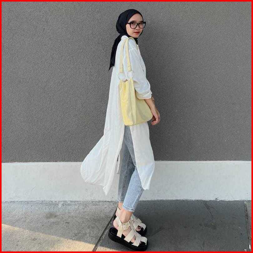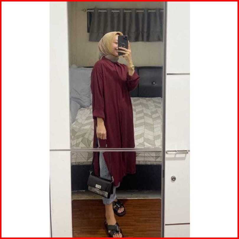 Rhai Long Tunik Polos Tunik Lengan Panjang Atasan Tunik Wanita Kekinian