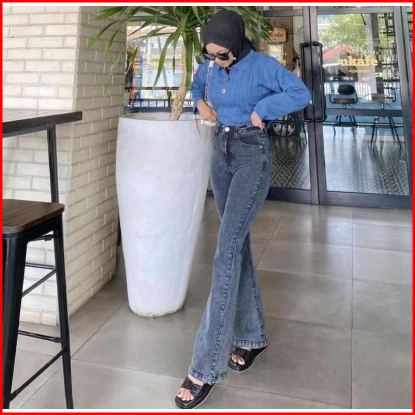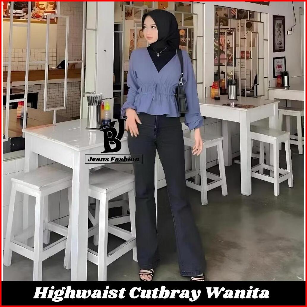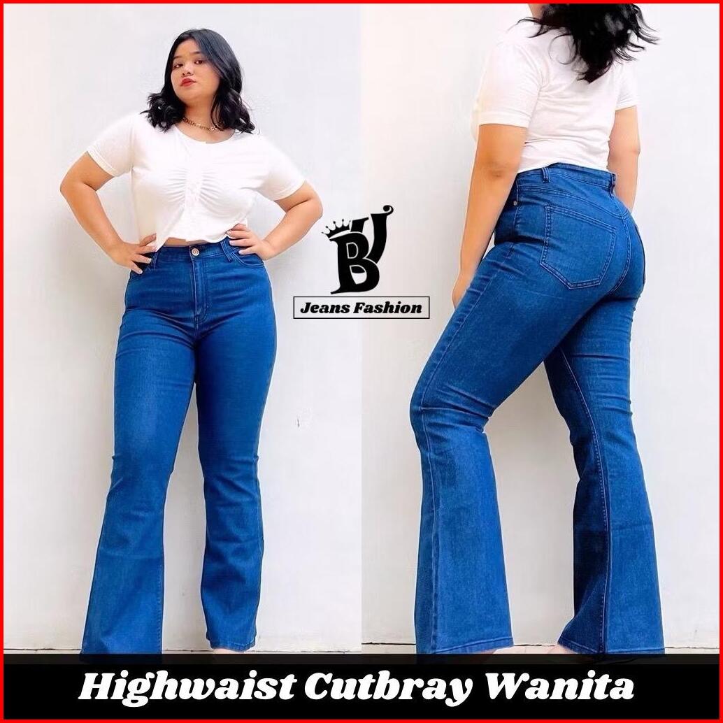 Celana Highwaist Cutbray Jeans Jumbo Melar Strechy