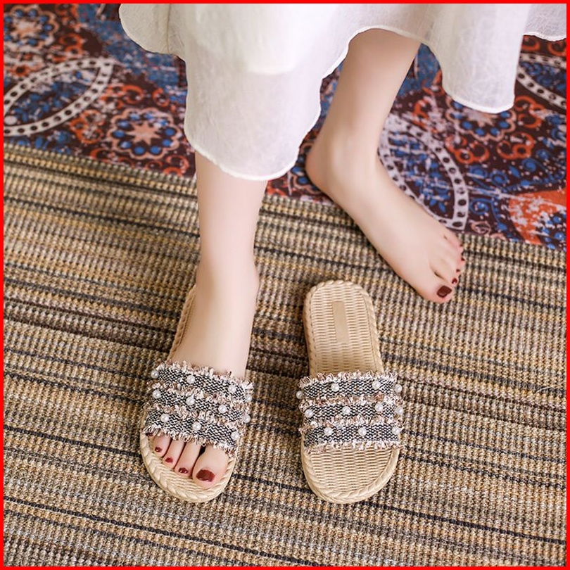 Lyt Siyeon Tg0702 Sandal Wanita Slop Motif Rumbai Import