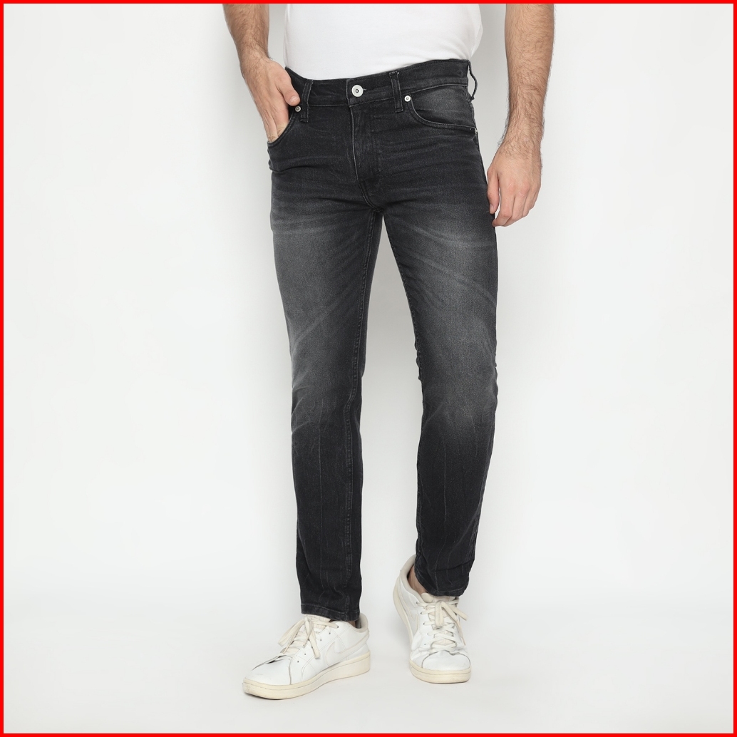 Trondheim Celana Jeans Denim Pria Slim Fit Malorka Hitam Whisker
