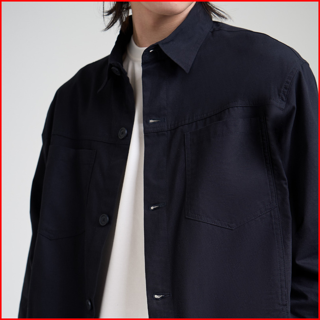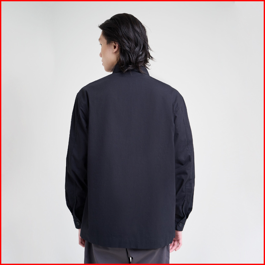 M231 Jaket Pria Overshirt Canvas Panjang Hitam 0696b