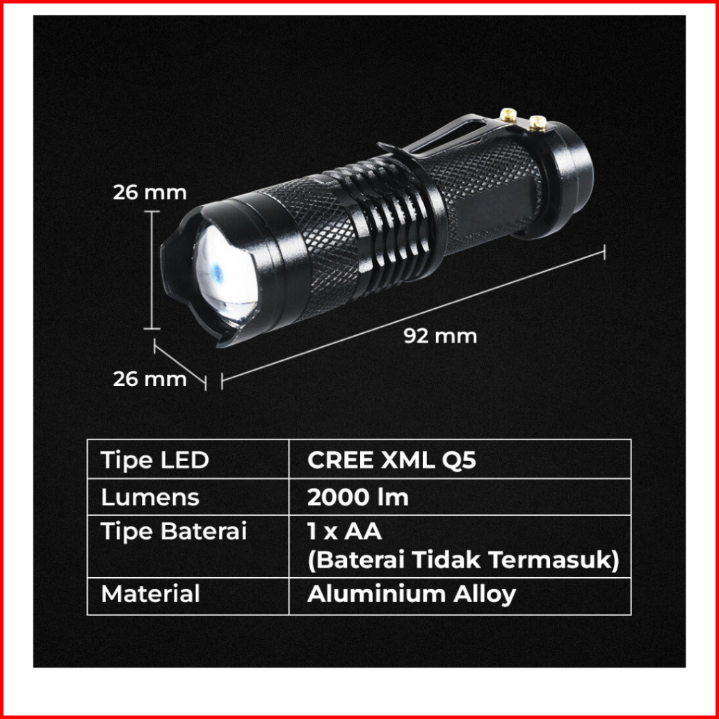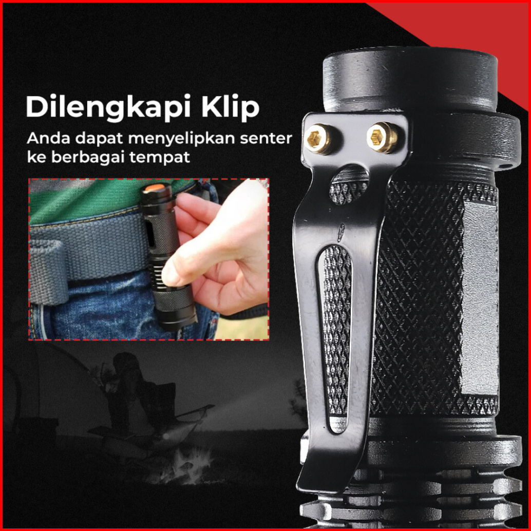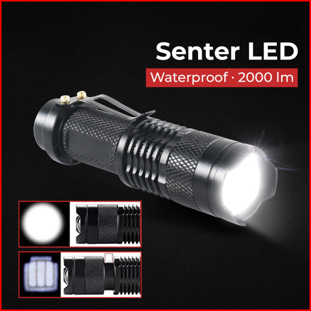 Credifox Senter Led Zoom Waterproof 2000 Lumens - Senter Outdoor Hiking - Senter Gunung