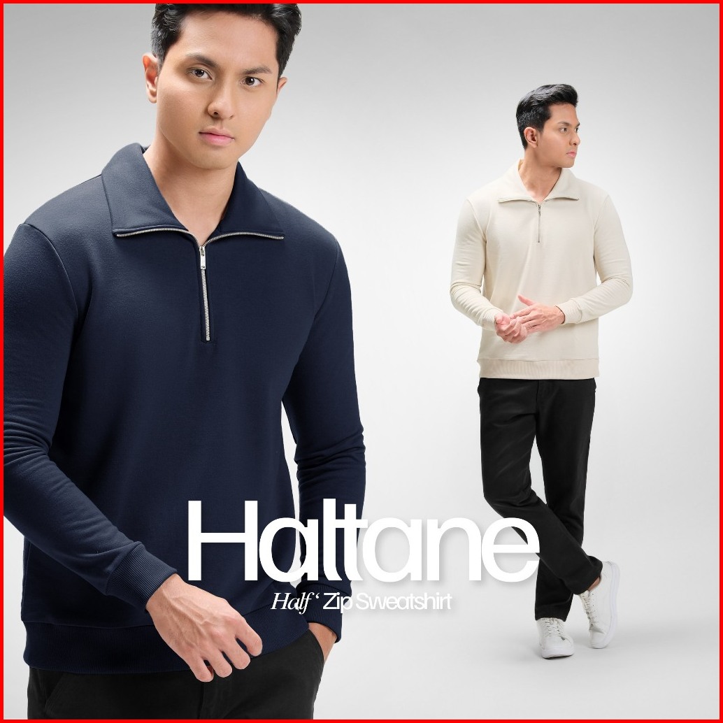 Cutoff Haltane Half Zip Sweatshirt Sweater Pria Premium Casual Lengan Panjang