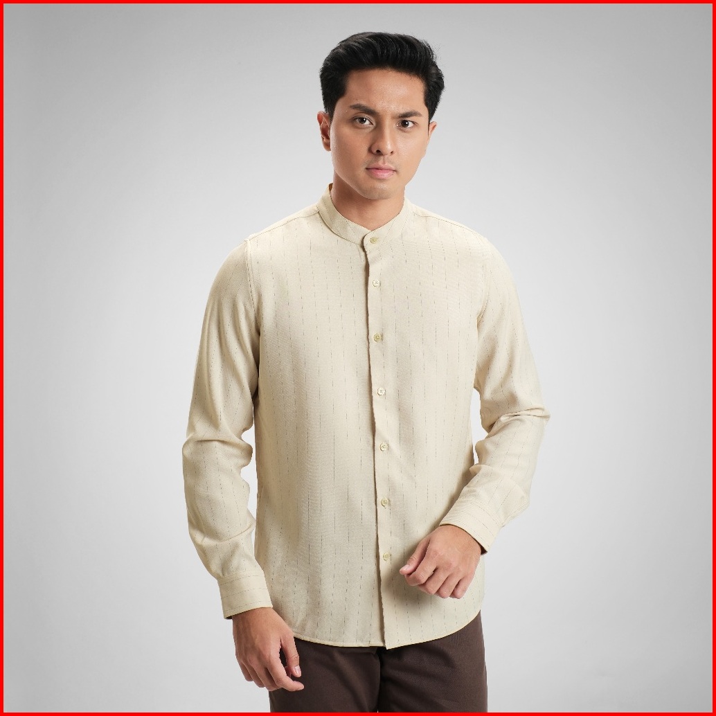 Cutoff Raheem Pinstripe Collarless Shirt Kemeja Koko Salur Garis Pria Lengan Panjang