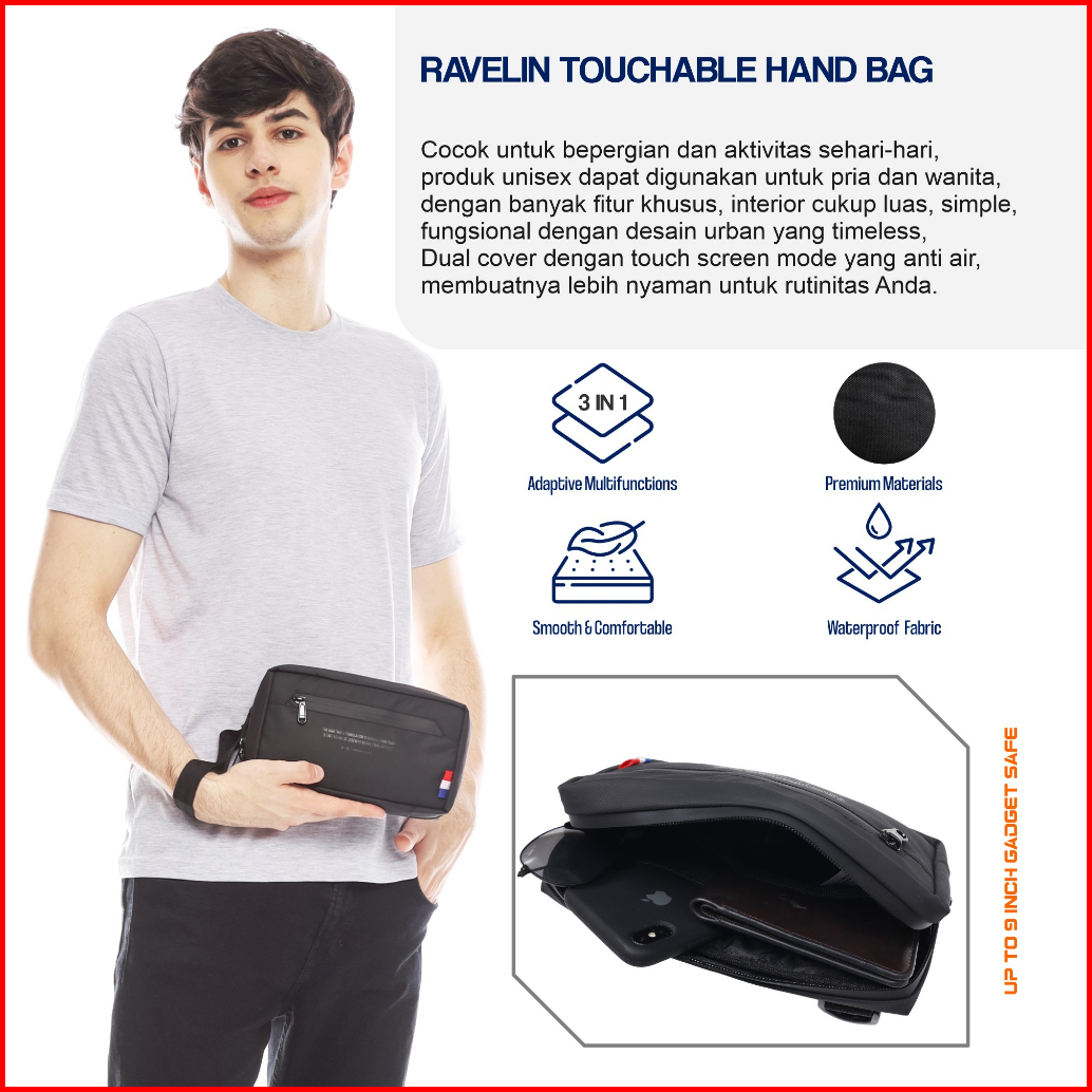 Mr Mads - Tas Hand Bag Ravelin 3 In One - Clutch Bag Pria - Sling Bag Pria - Tas Selempang Pria Multifungsi