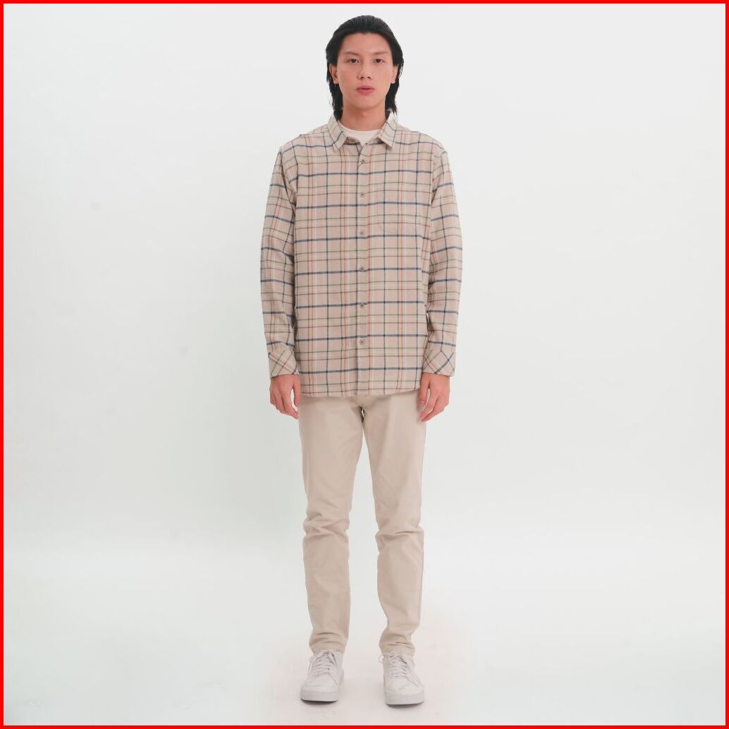M231 Kemeja Pria Flannel Panjang Khaki 1246