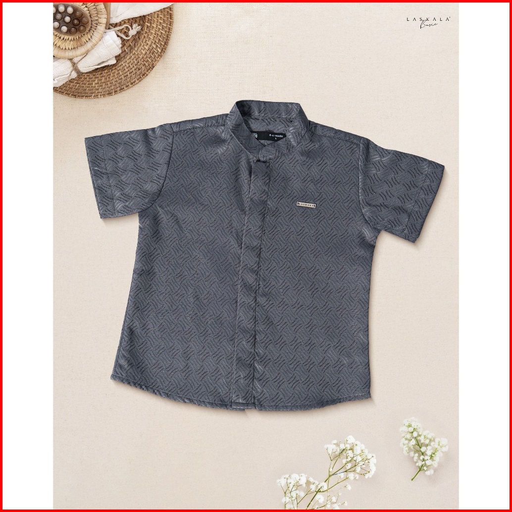 Havar Kids Omar Grey Kemeja Koko Muslim Premium Lengan Pendek