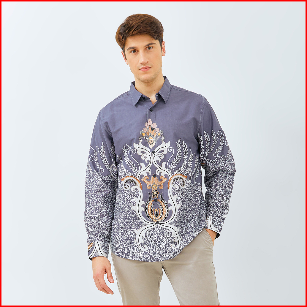 M231 Kemeja Pria Batik Panjang Abu Tua 3141b