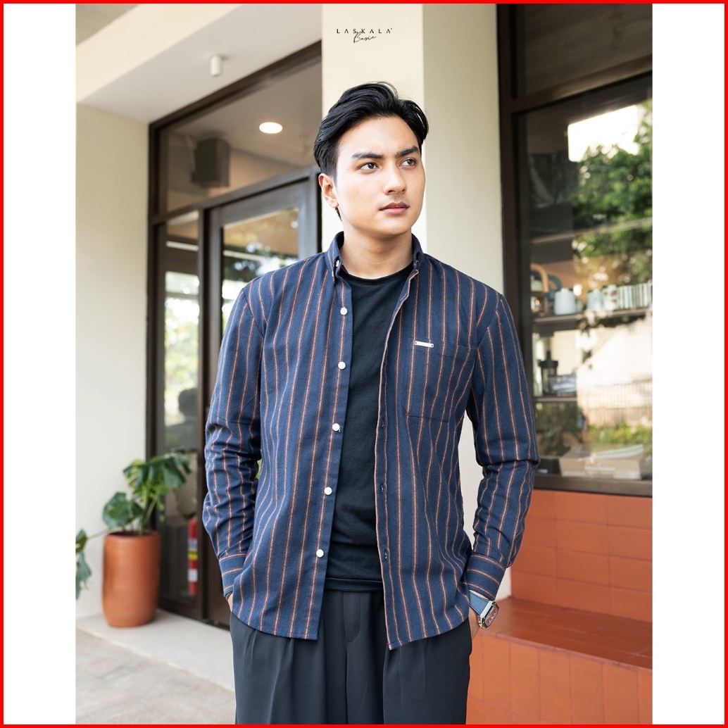 Hailuk Levy Kemeja Stripes Pria Lengan Panjang Premium