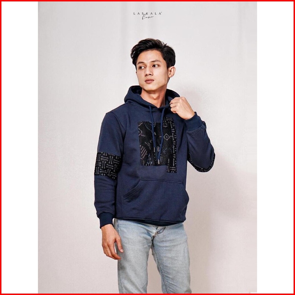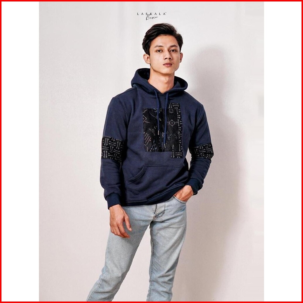 Hailuk Deon Navy Hoodie Pria Premium Cotton Fleece