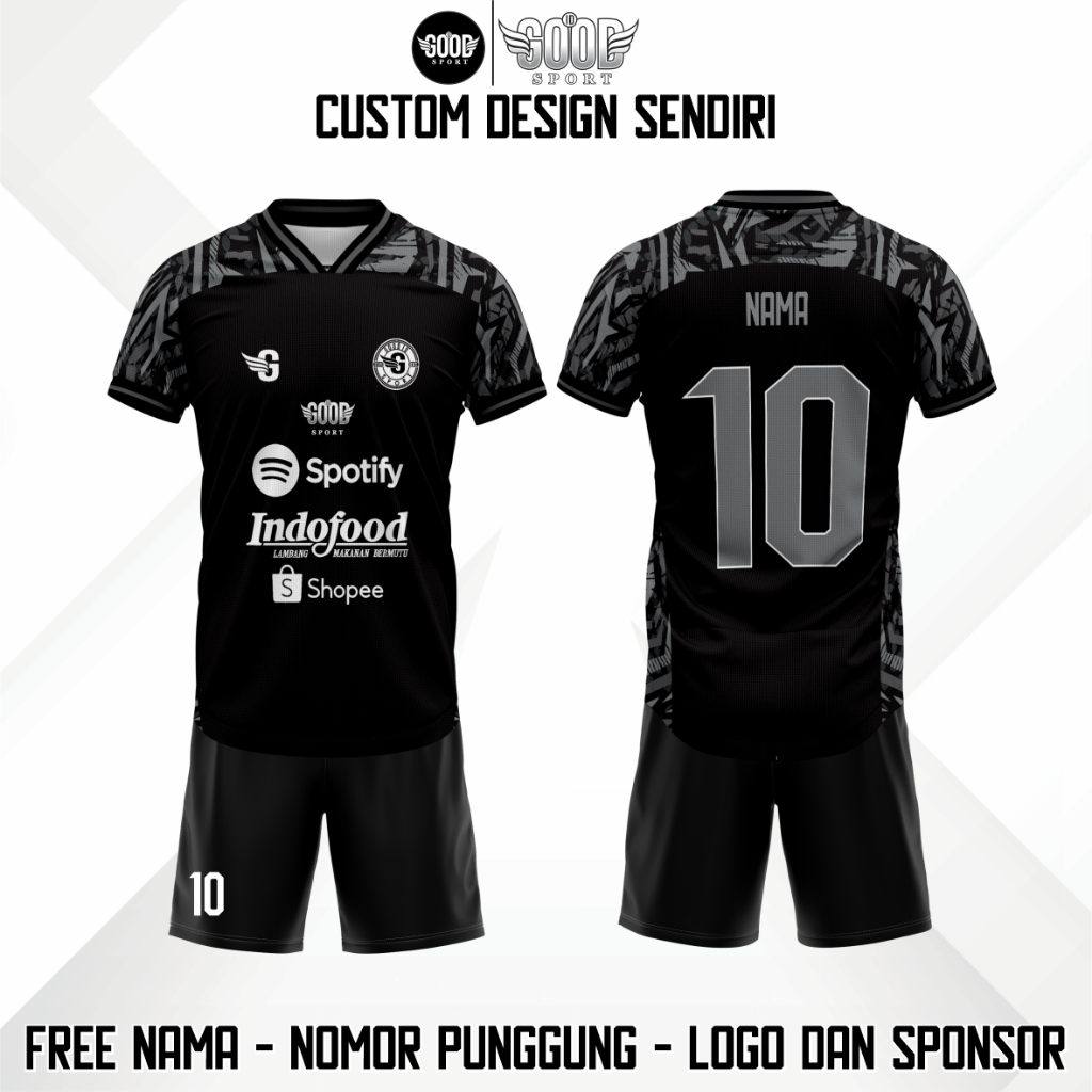 JERSEY FUTSAL / SEPAKBOLA BLACK VIRAL FREE CUSTOM NAMA NOMER PUNGGUNG LOGO NAMA TEAM FULL PRINTING