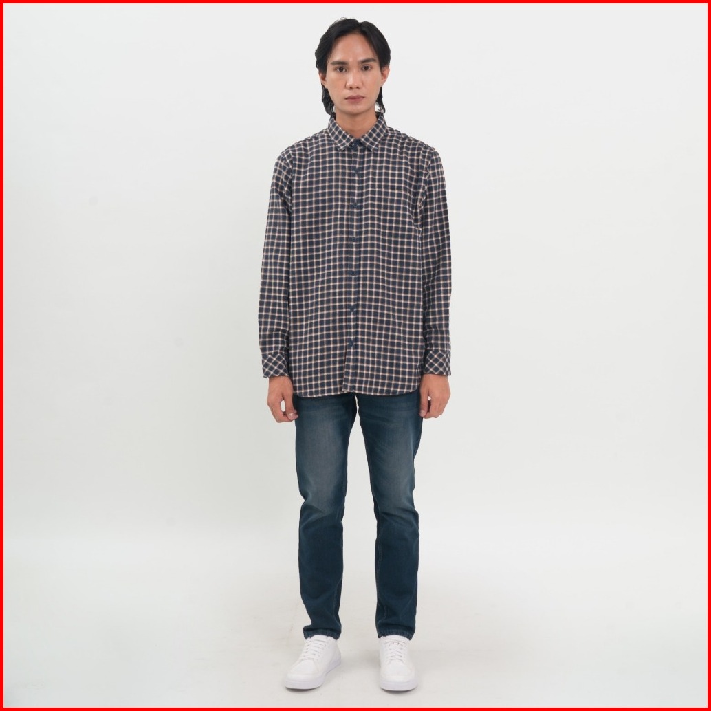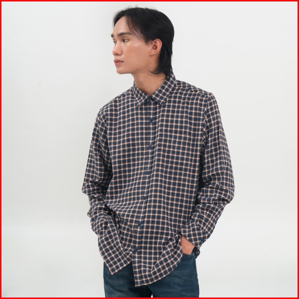 M231 Kemeja Pria Flannel Panjang Navy 0894