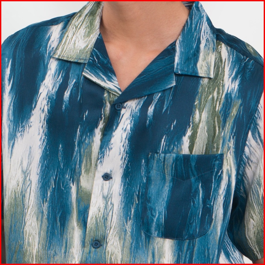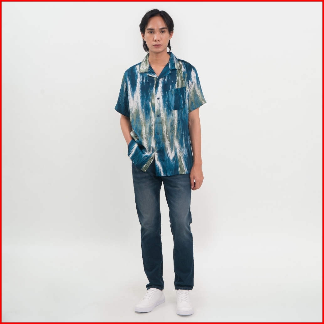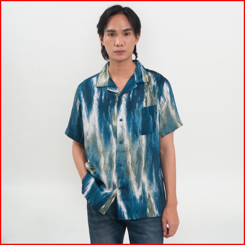 M231 Kemeja Pria Tencel Printing Hawaii Pendek Hijau 0501