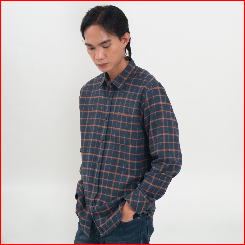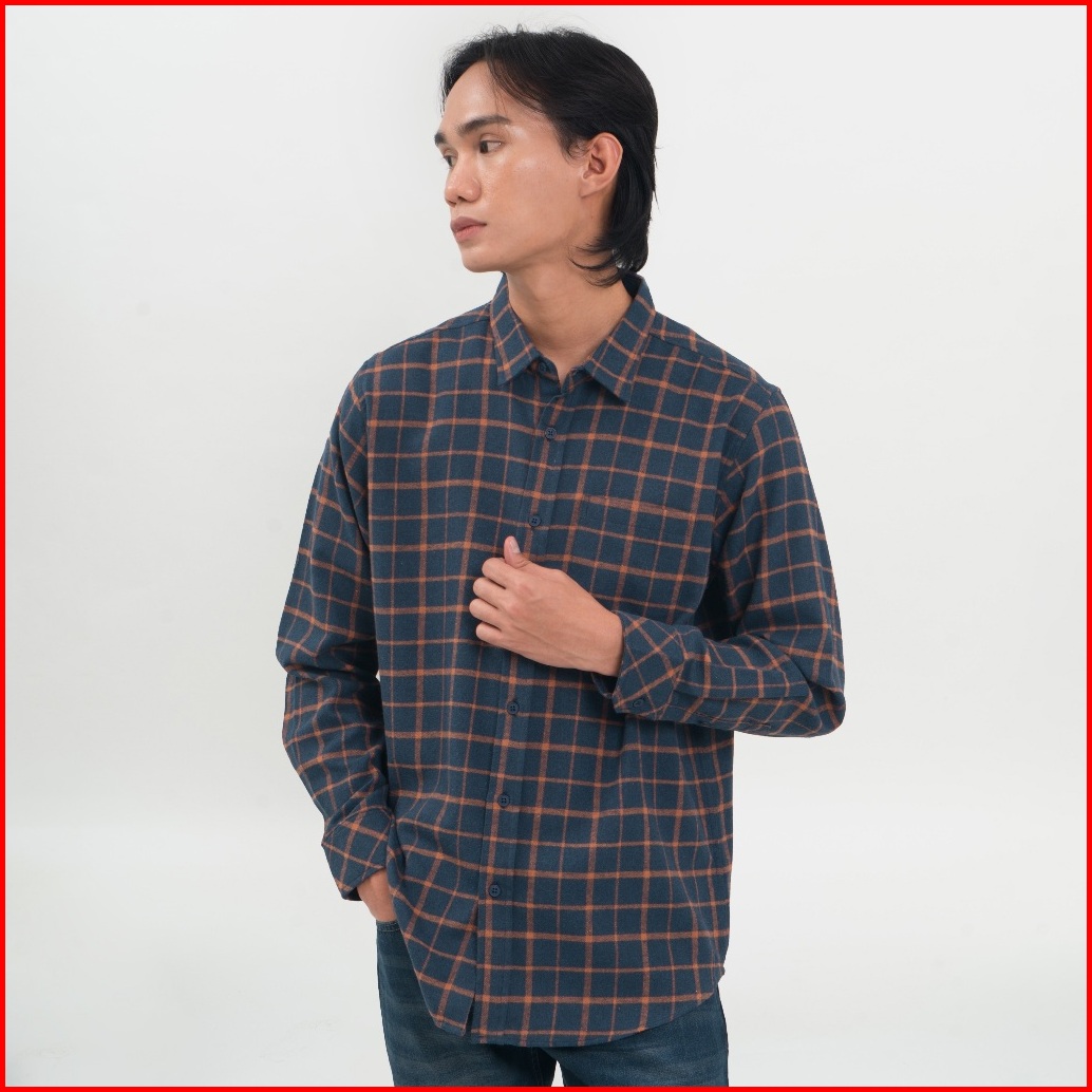 M231 Kemeja Pria Flannel Panjang Navy 0893