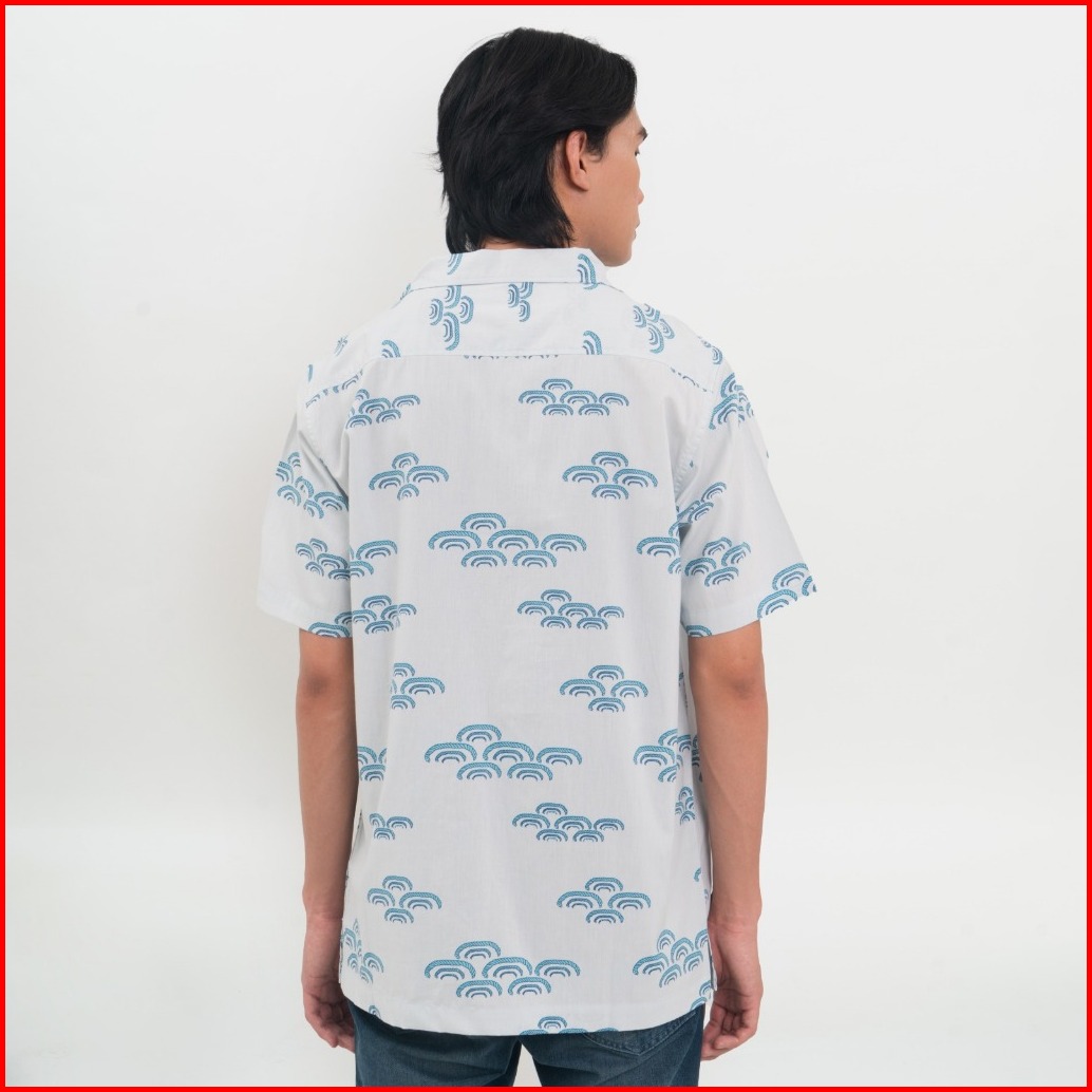 M231 Kemeja Pria Tencel Printing Hawaii Pendek Biru 0899a