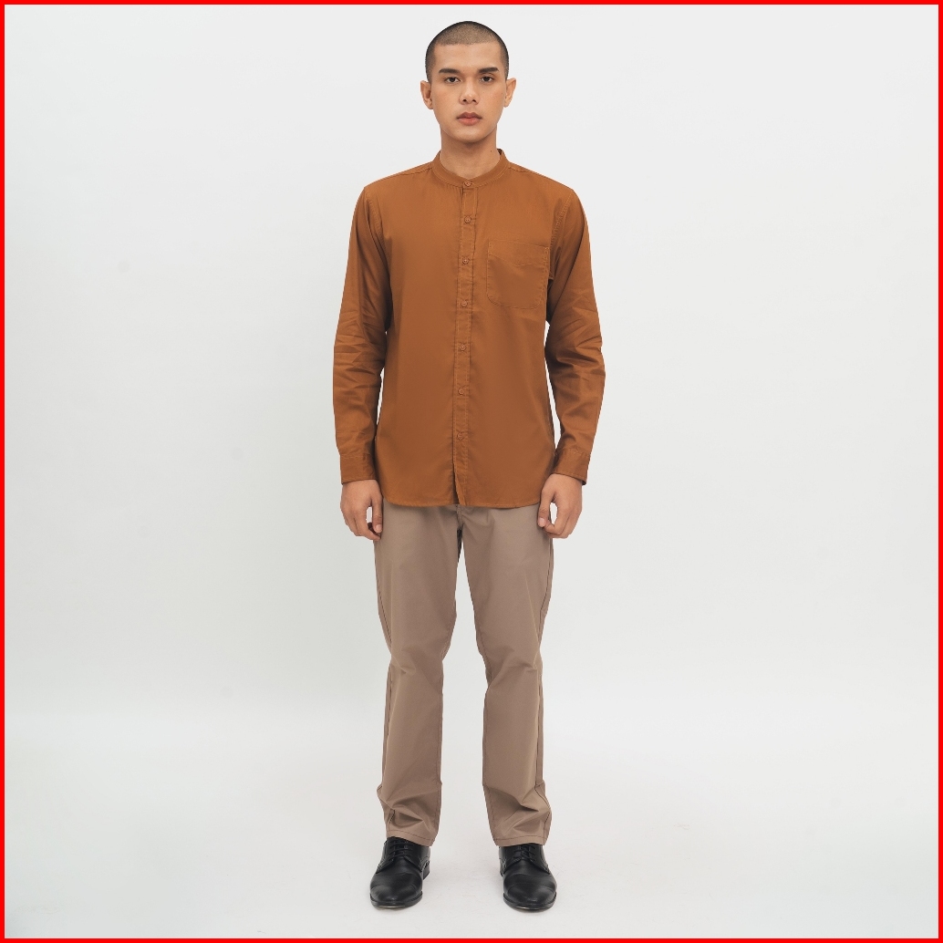 M231 Kemeja Pria Koko Shanghai Polos Panjang Coklat 0915b