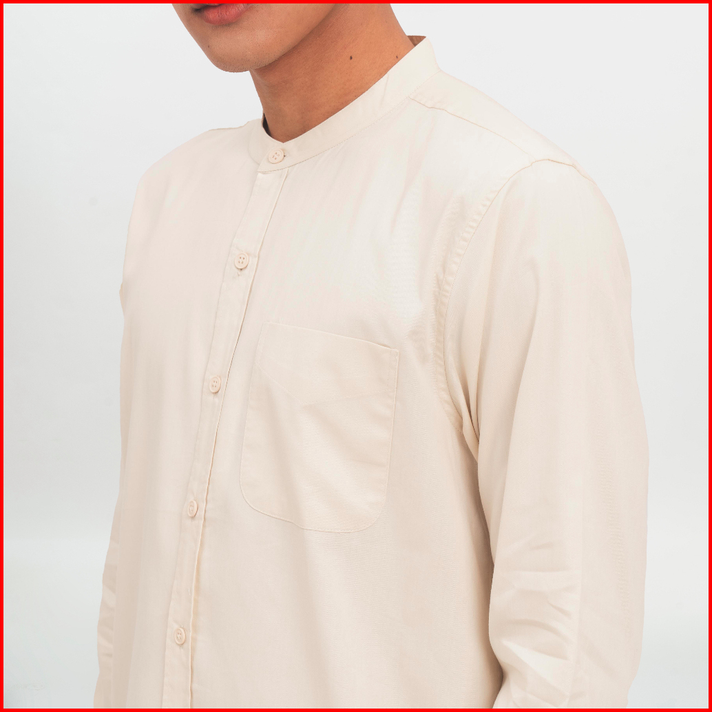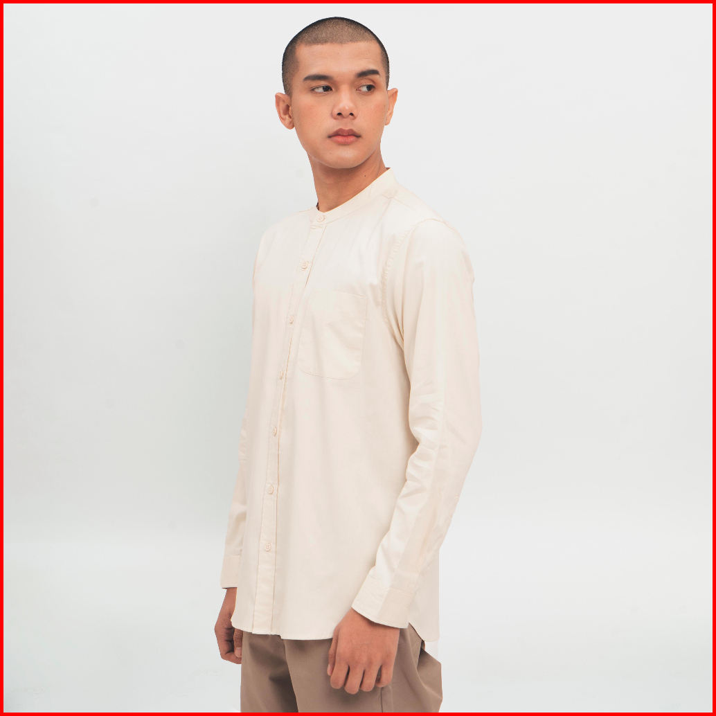 M231 Kemeja Pria Koko Shanghai Polos Panjang Cream 0915a