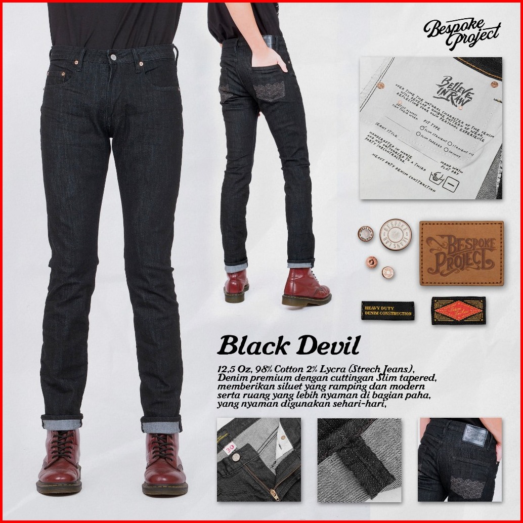 Bespoke Project - Celana Jeans Pria Black Devil Stretch