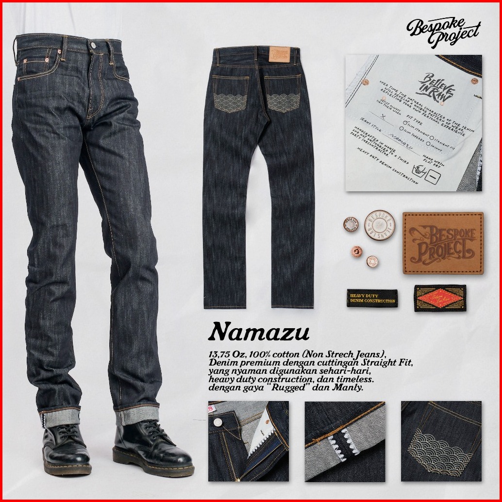 Bespoke Project - Celana Pria Raw Denim Namazu Slim Straight