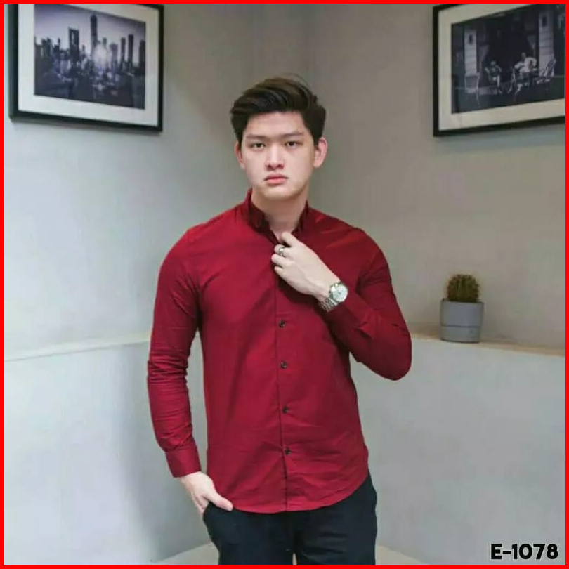 Kemeja Cowok Polos Pria Lengan Panjang Slimfit Hem Pria Kantor Hitam Navy Putih Maron Army