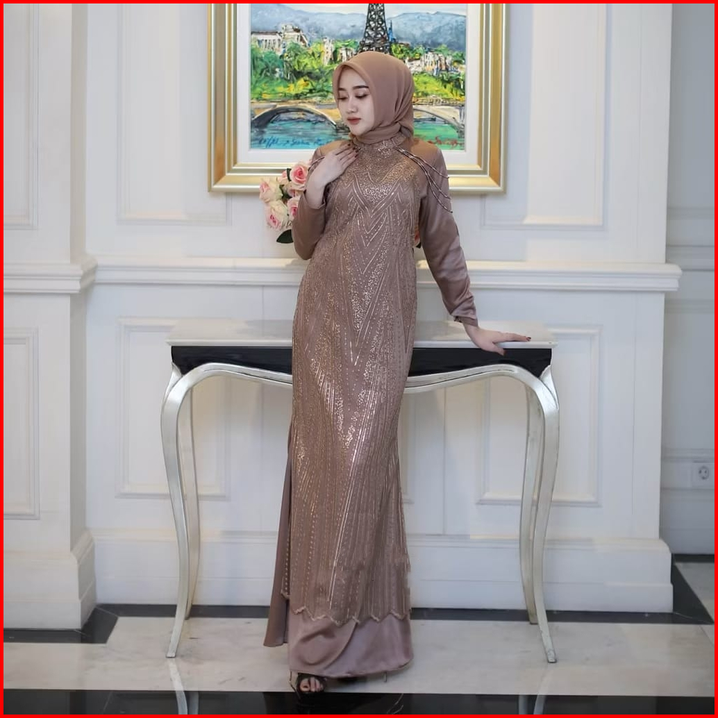 Luvita Dress Silk Mix Brukat Fashion Muslim Gamis Dress Kondangan Terbaru - Best Seller