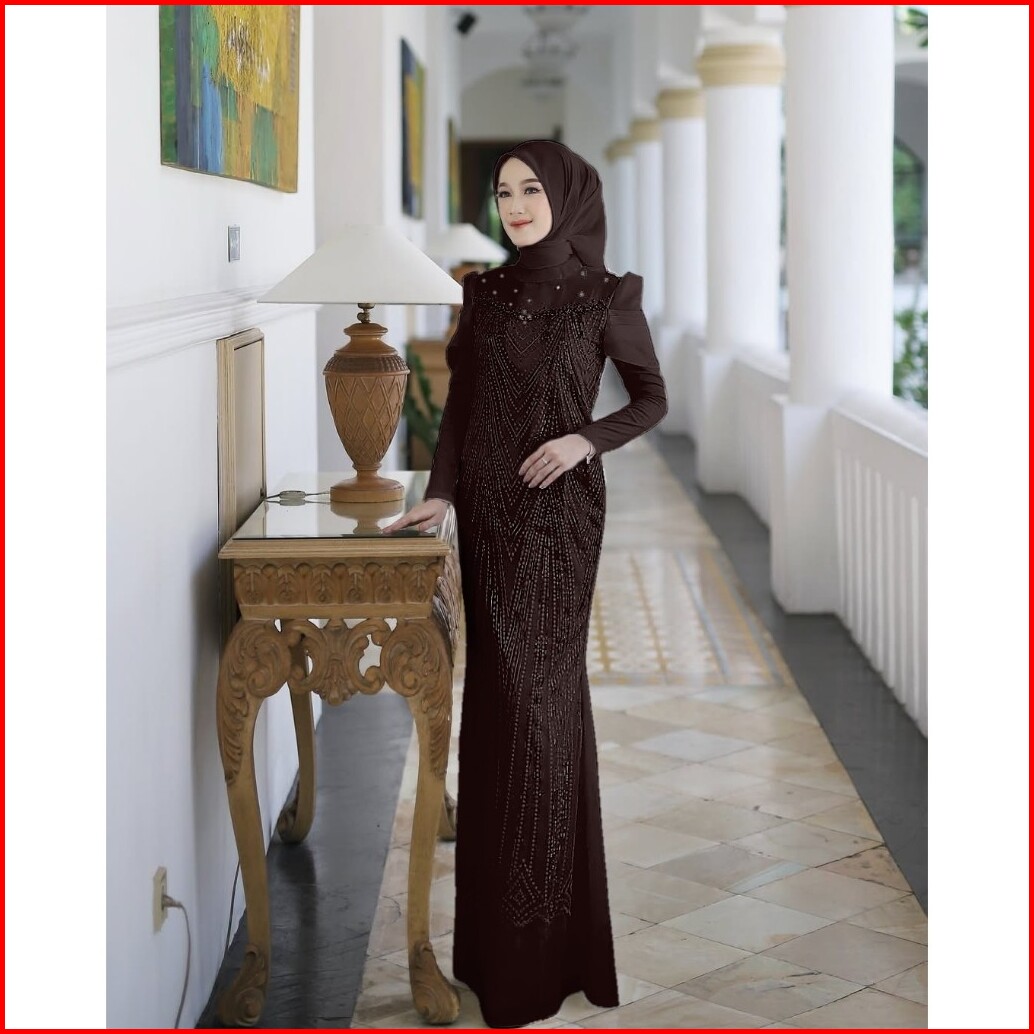 Leona Dress Silk Mix Brukat Fashion Muslim Gamis Dress Kondangan Terbaru - Best Seller