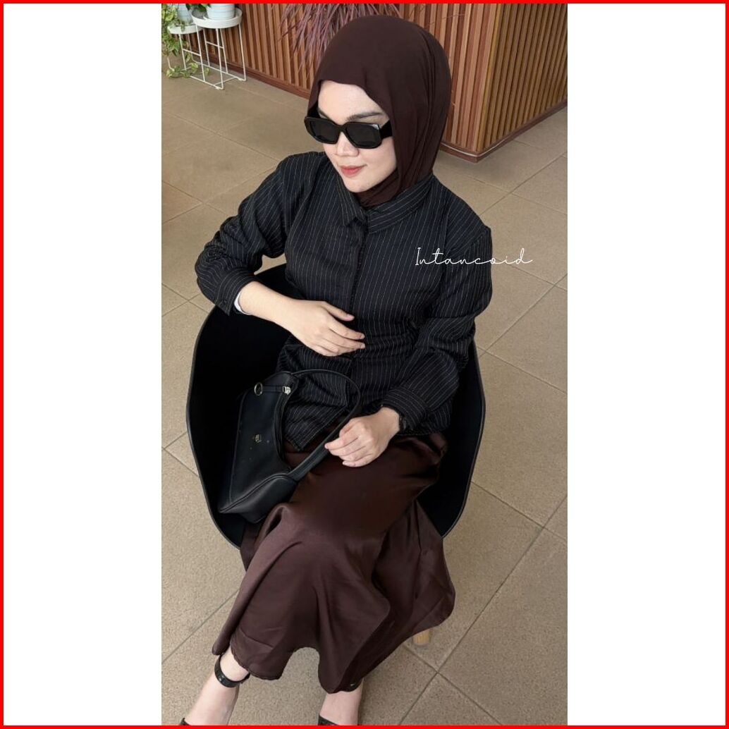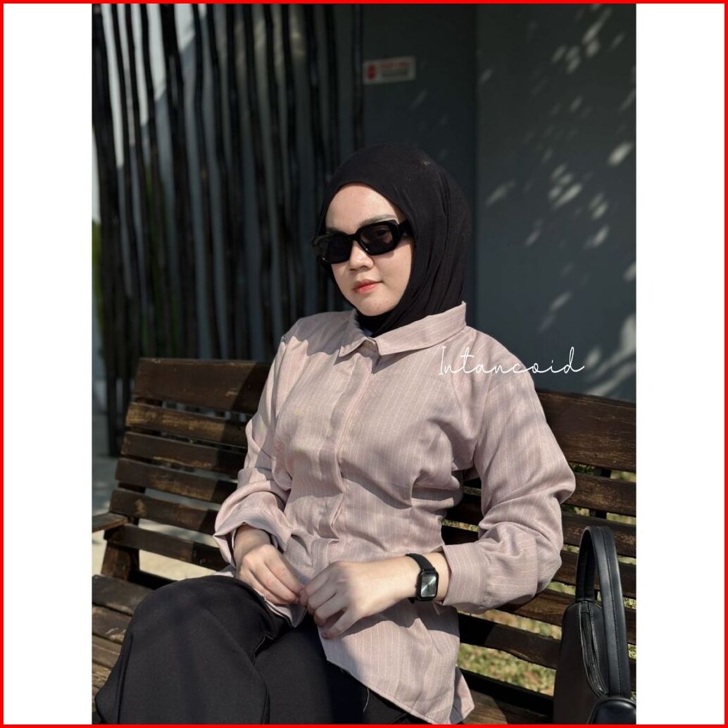 Rhai Stripe Garis Kemeja Fitted Smiwoll Kemeja Slimfit Kemeja Kerja Garis Atasan Lengan Panjang Kemeja Wanita