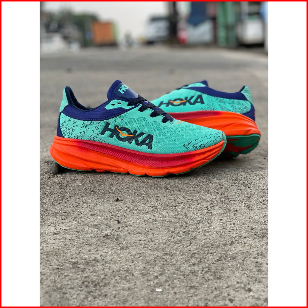Hoka hijau tosca, Hoka hitam oren, Hoka abu hitam, Hoka tosca oren, Hoka navy kuning, Hoka abu oren, Hoka abu kuning, Hoka navy oren, Hoka navy tosca, Hoka hitam polos