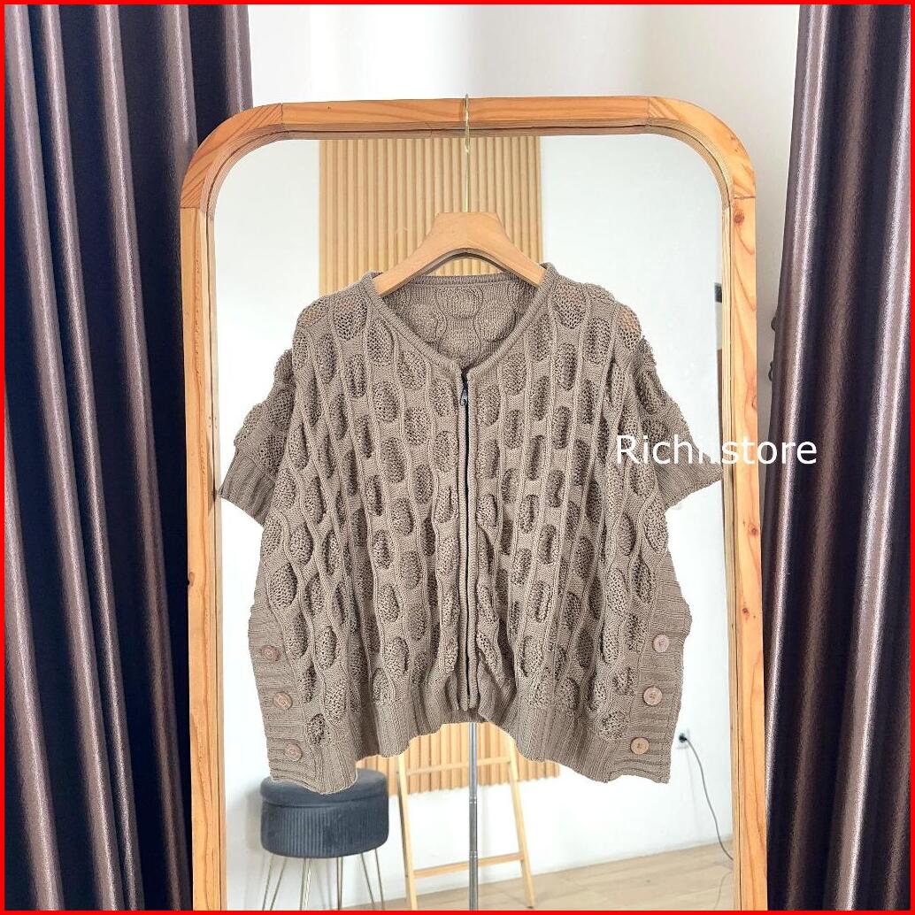 Yuka Vest Crop Zipper Rajut Baju Wanita Knitwear Rompi Motif Jaring