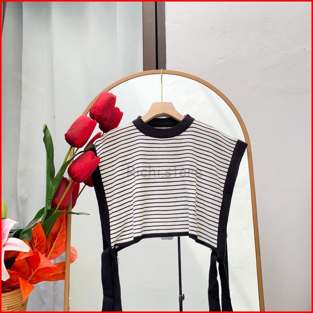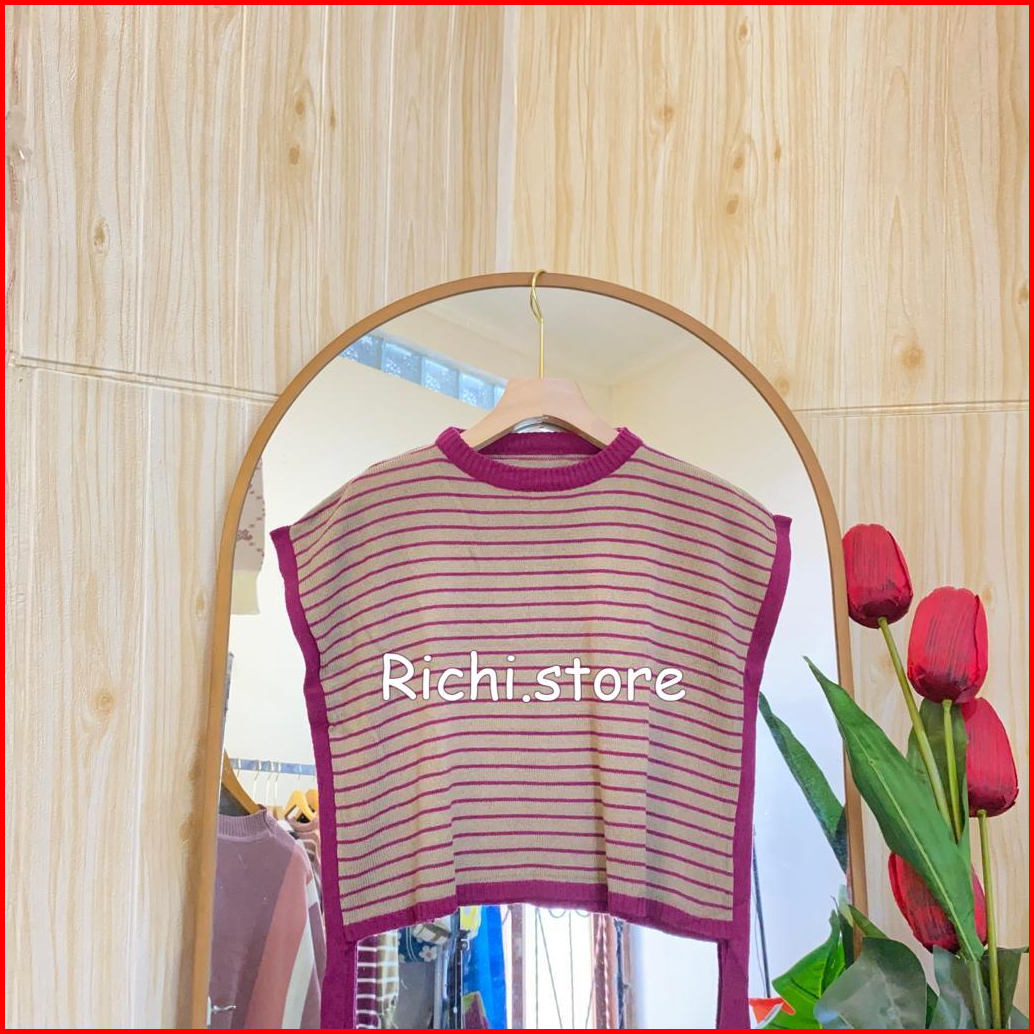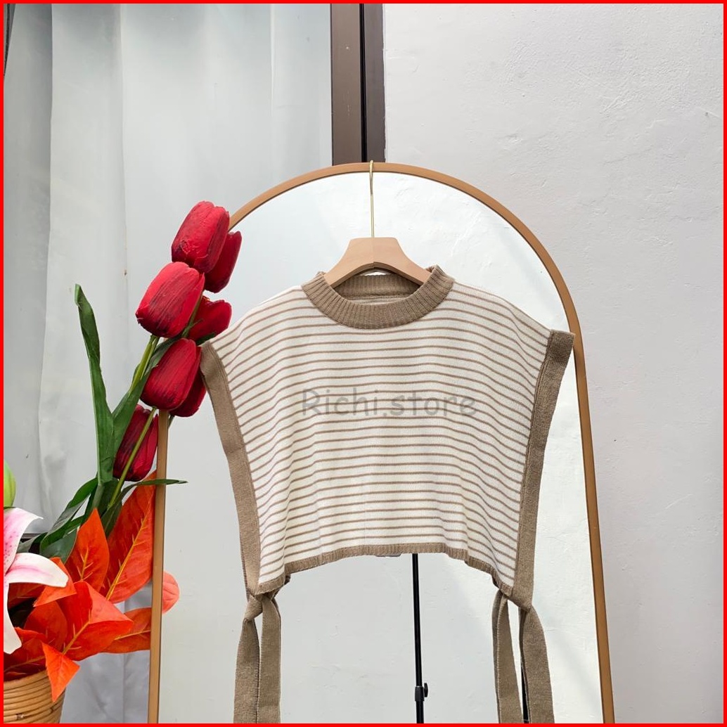 Yura Vest Tali Crop Blaster Rajut Garis-garis