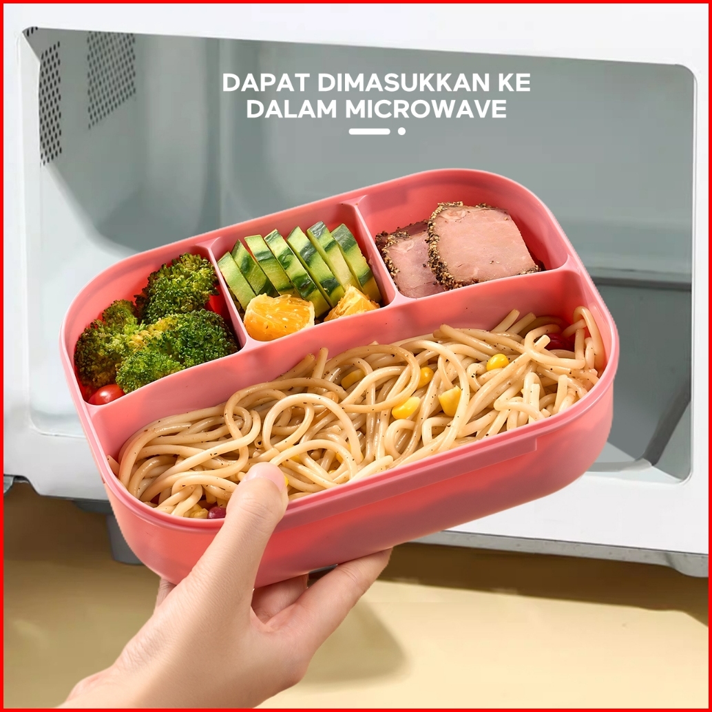 Ecentio Tempat Makan Anak Sekolah Anti Tumpah Lunch Box Set 1200ml 4 Sekat Kotak Bekal Makan Botol Minum 500ml Dengan Se