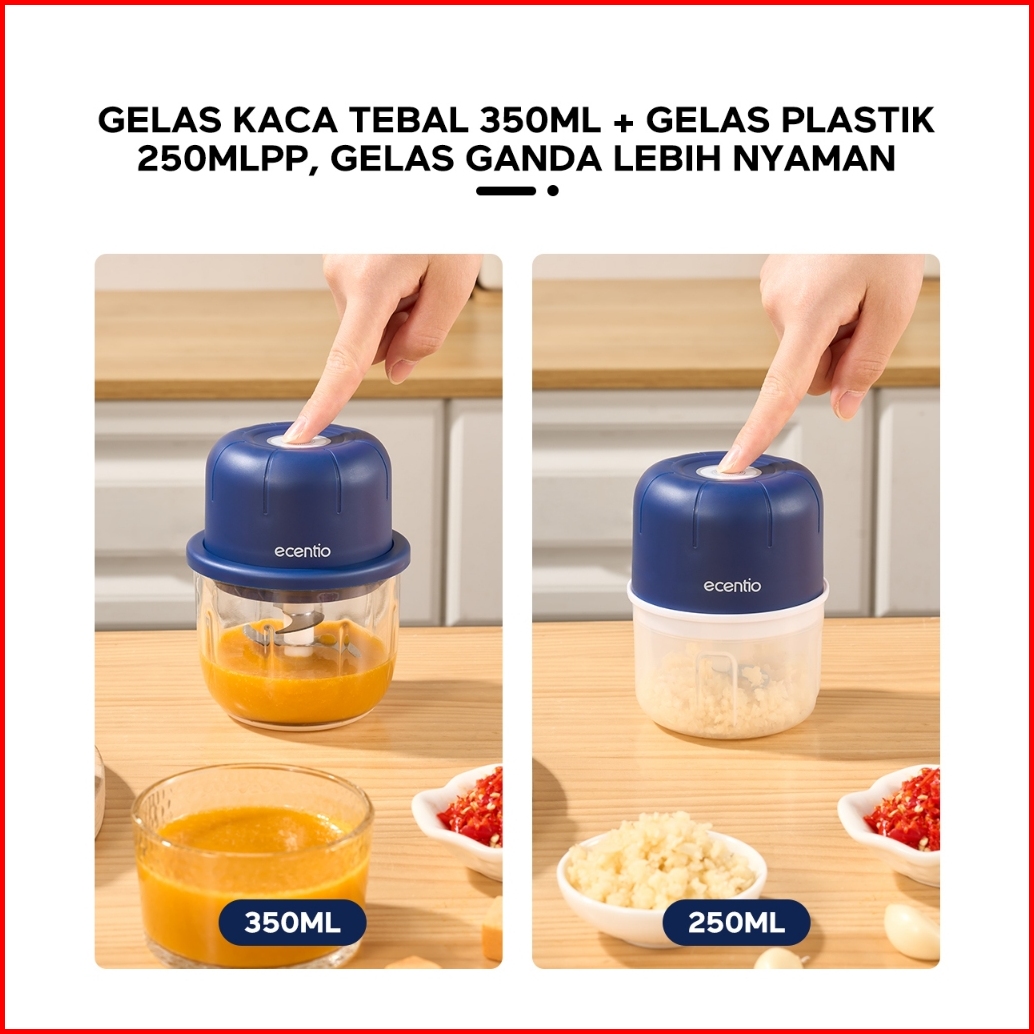 Ecentio Mini Chopper Kaca Blender 3in1 Portable Multifungsi Blender 6 Pisau 3 Pisau 350ml 250ml Kaca Tebal Dapur Blender