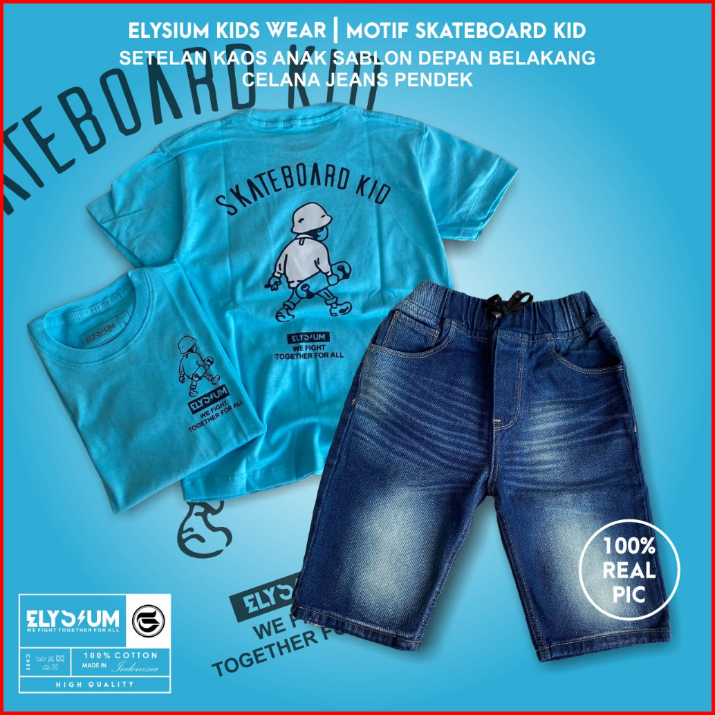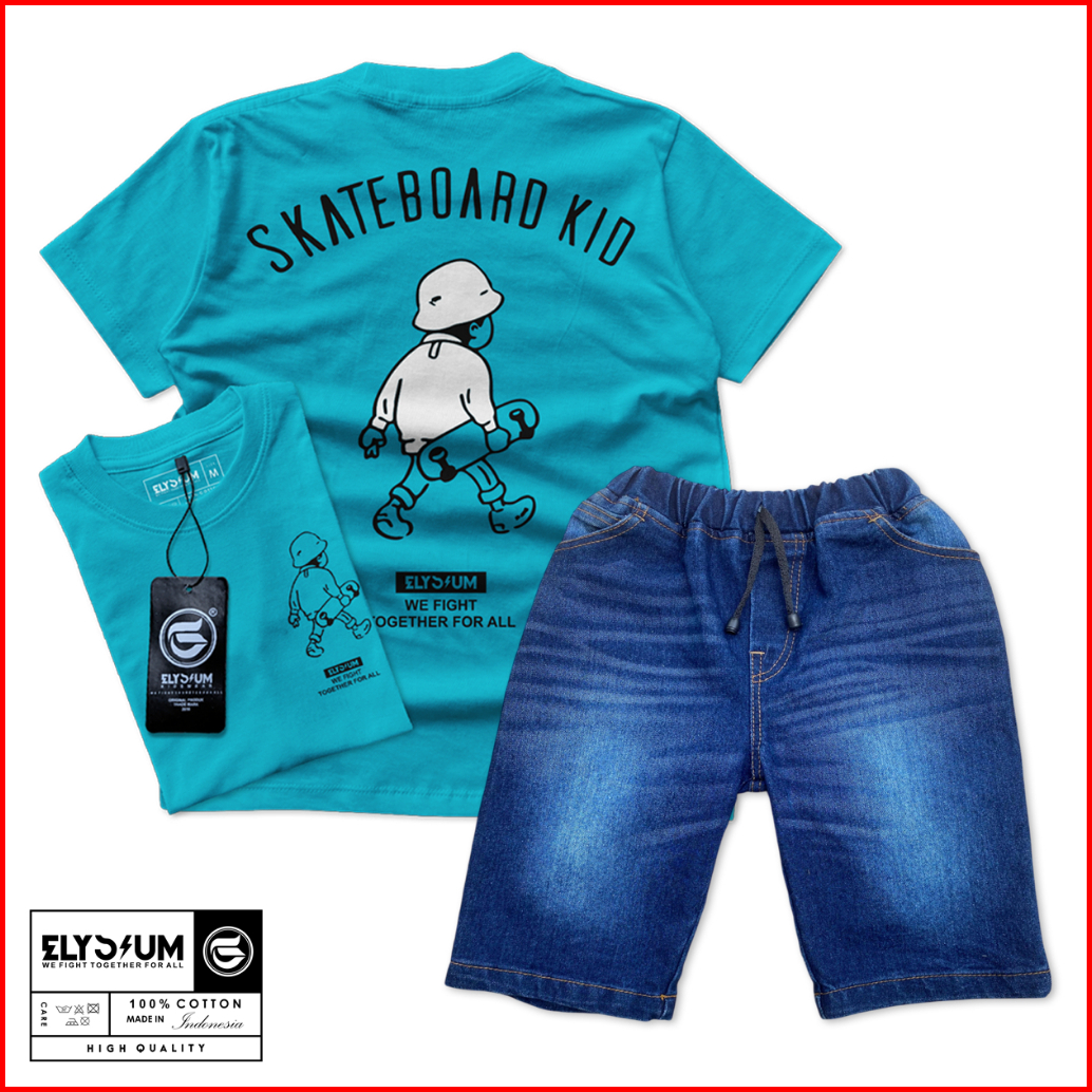 Elysium Kidswear Setelan Celana Pendek Setelan Kaos Distro Anak Celana Jeans Pendek Usia 4-12 Tahun