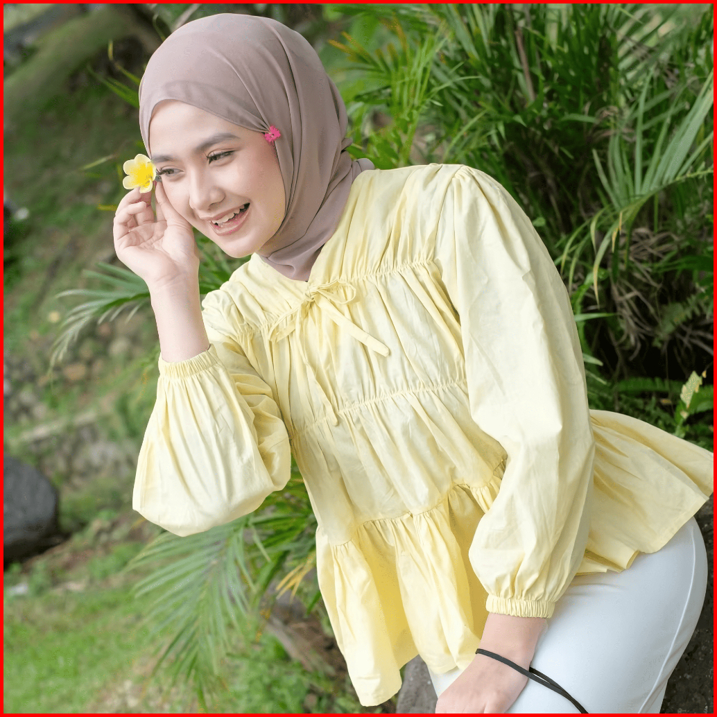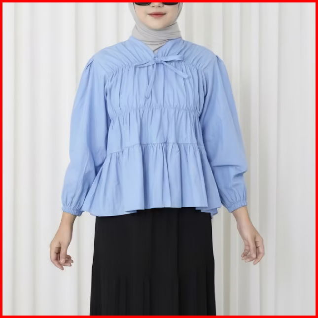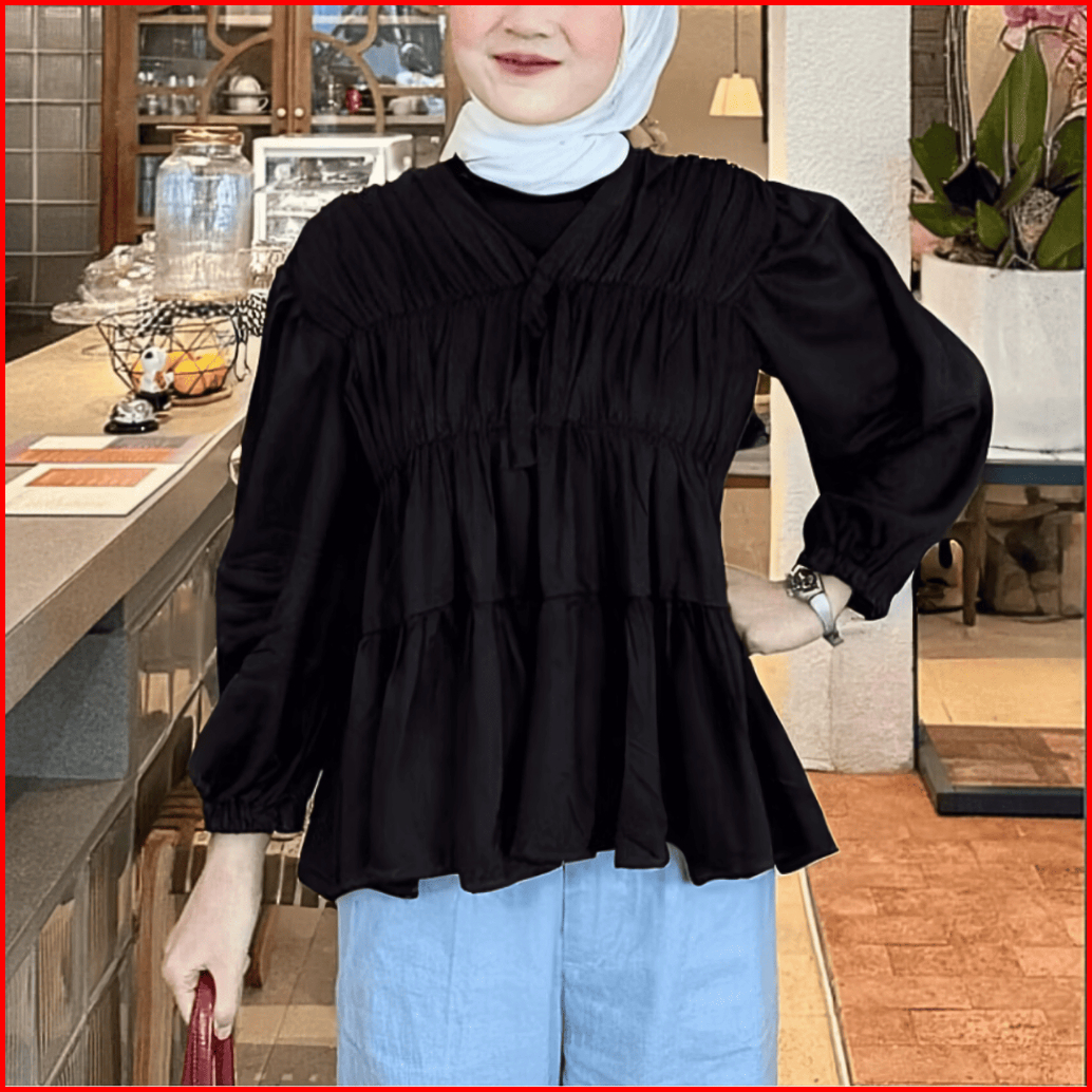 Fmly Mireya Blouse Kerut Dada Lengan Panjang Bahan Rayon Atasan Wanita Terbaru