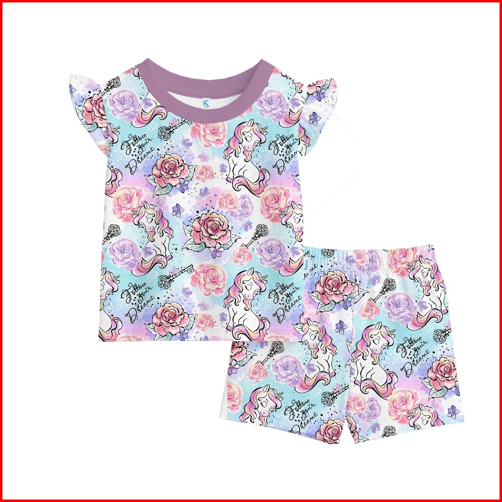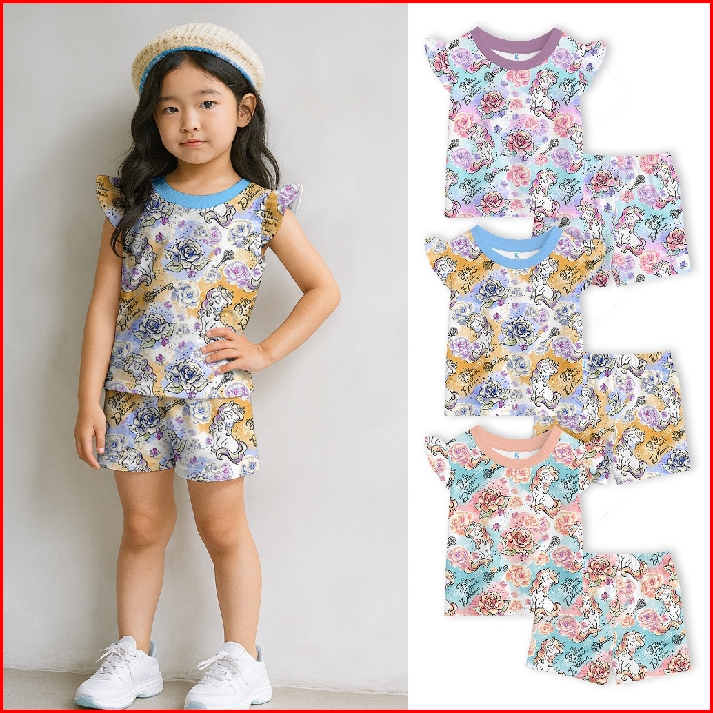 Kennai Baju Ruffle Oneset Anak Perempuan Series Unicorn Usia 1-12 Tahun
