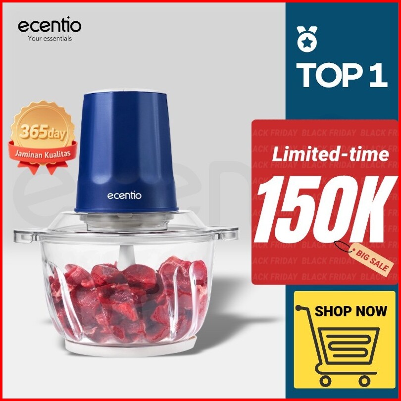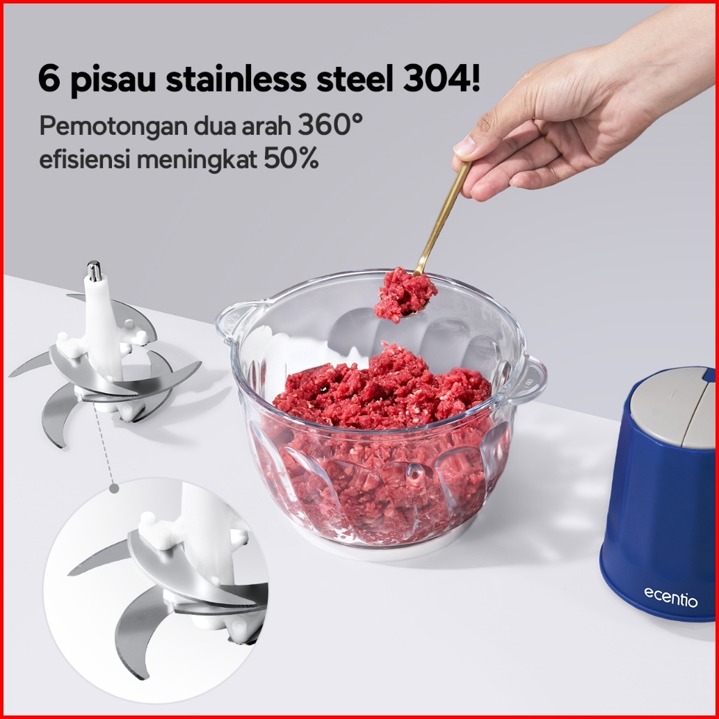 Ecentio Chopper Blender Kaca Multifungsi 2 Liter 6 Helai Gigi Baja Spiral Food Grade Garansi 1 Tahun