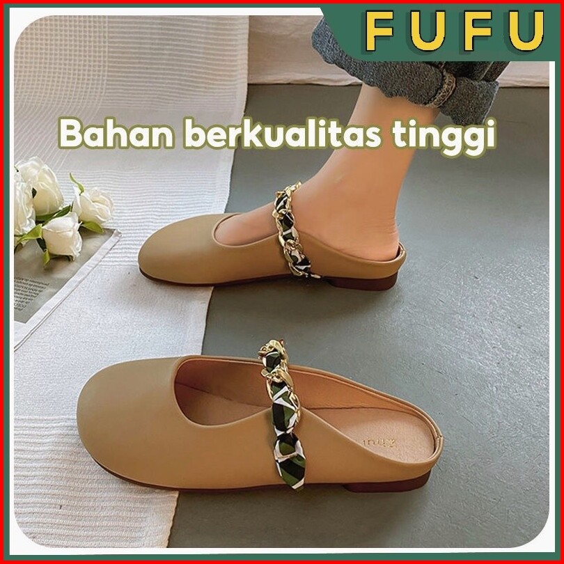 Fufu Sandal Wanita Slip-on Half Slipper Sandal Slop Sandal Jalan Sandal Korea