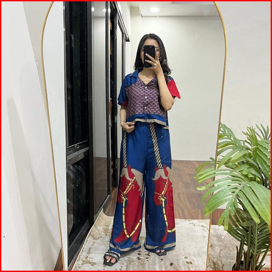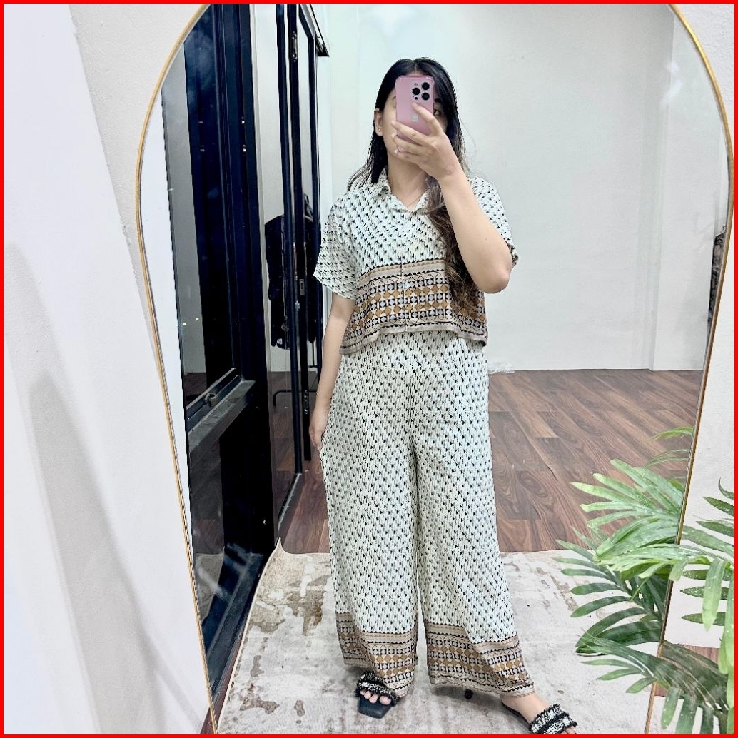 One Set Crop Celana Highwaist Rayon Premium