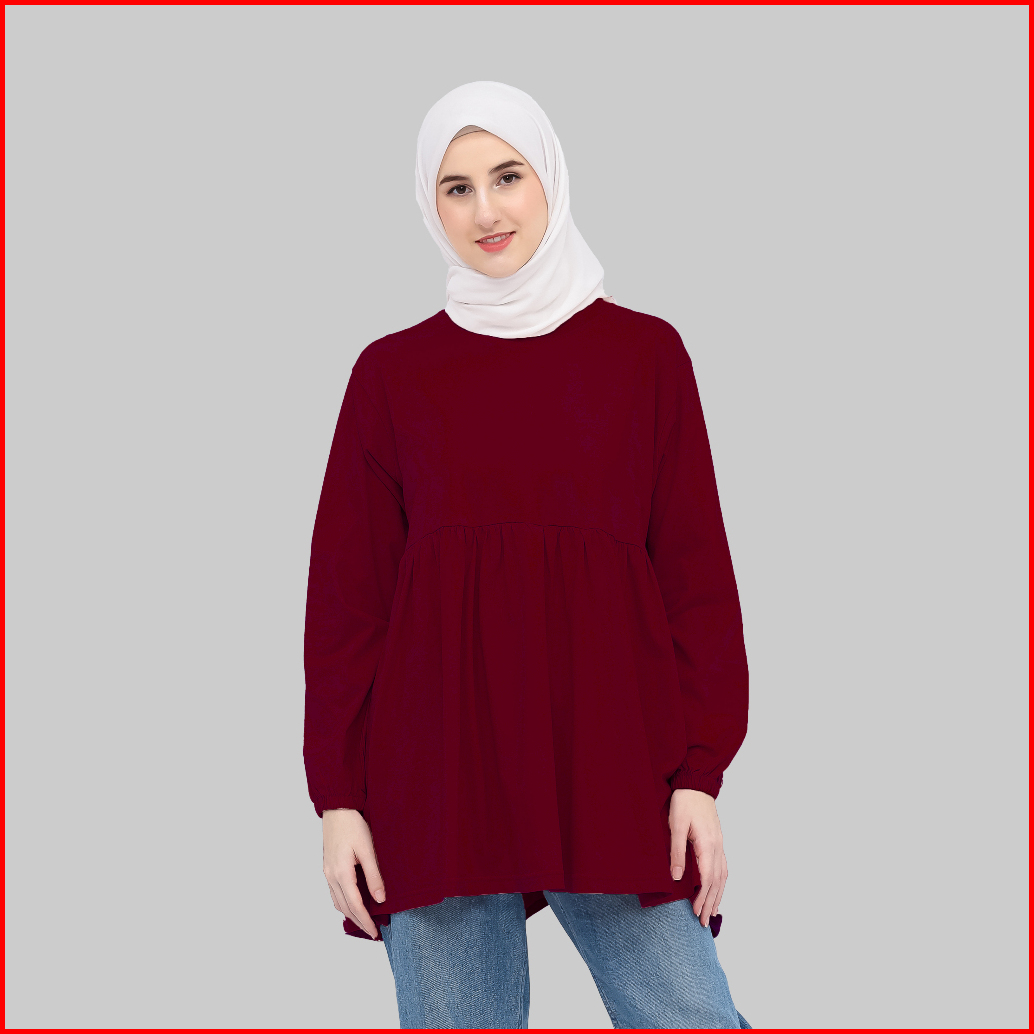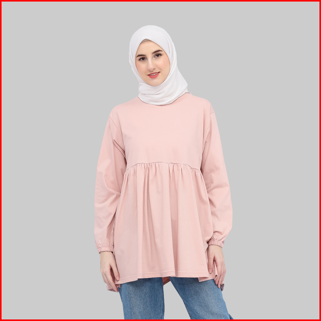 Ruffle Top Kaos Lengan Panjang Wanita Rample Bahan Katun Combed 24s