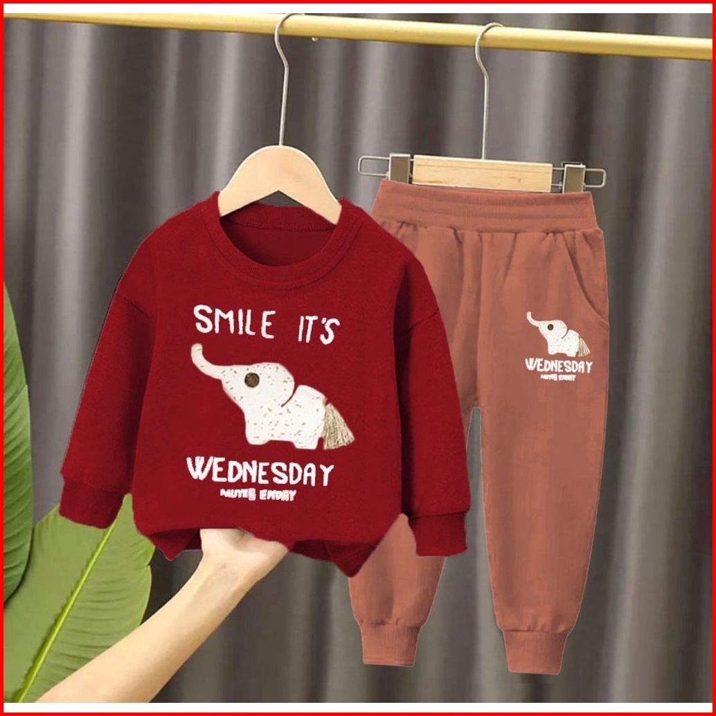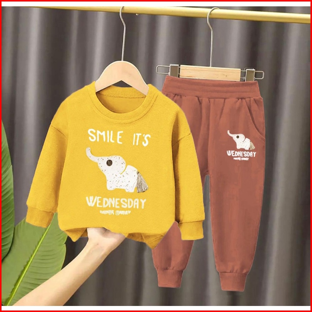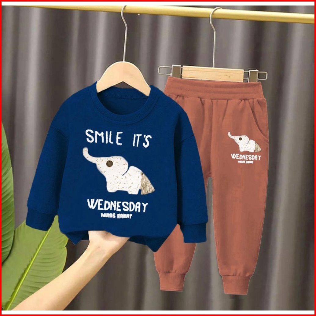 Setelan Baju Anak Laki Laki Dan Perempuan Setelan Sweater Joger Setelan Baju Dan Celana Anak 3bulan - 5tahun Gajah Navy