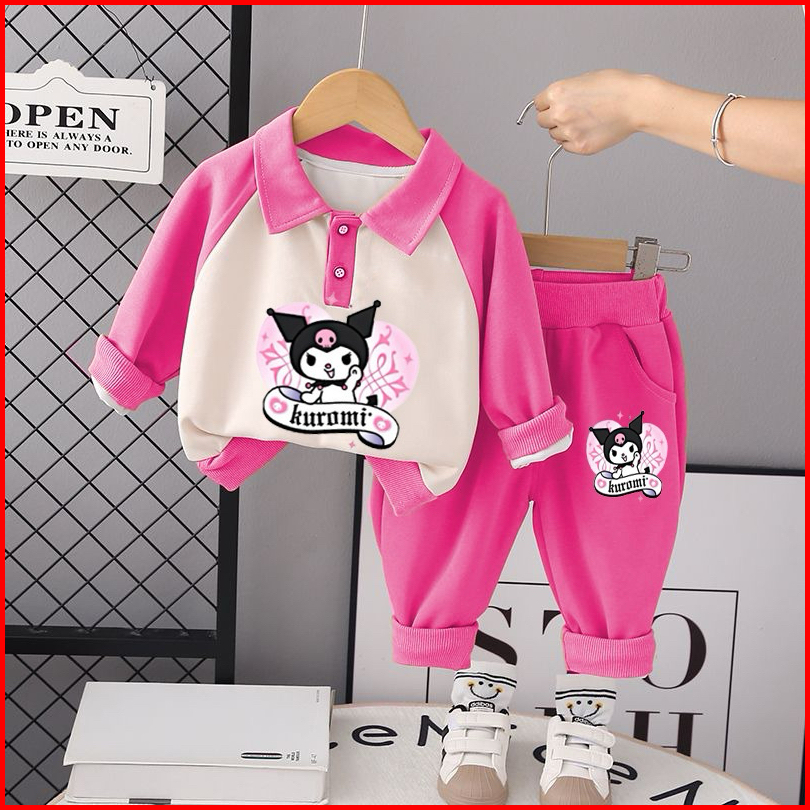 Setelan Anak Perempuan Set Sweater Joger Motif Kuromi 1-5 Tahun